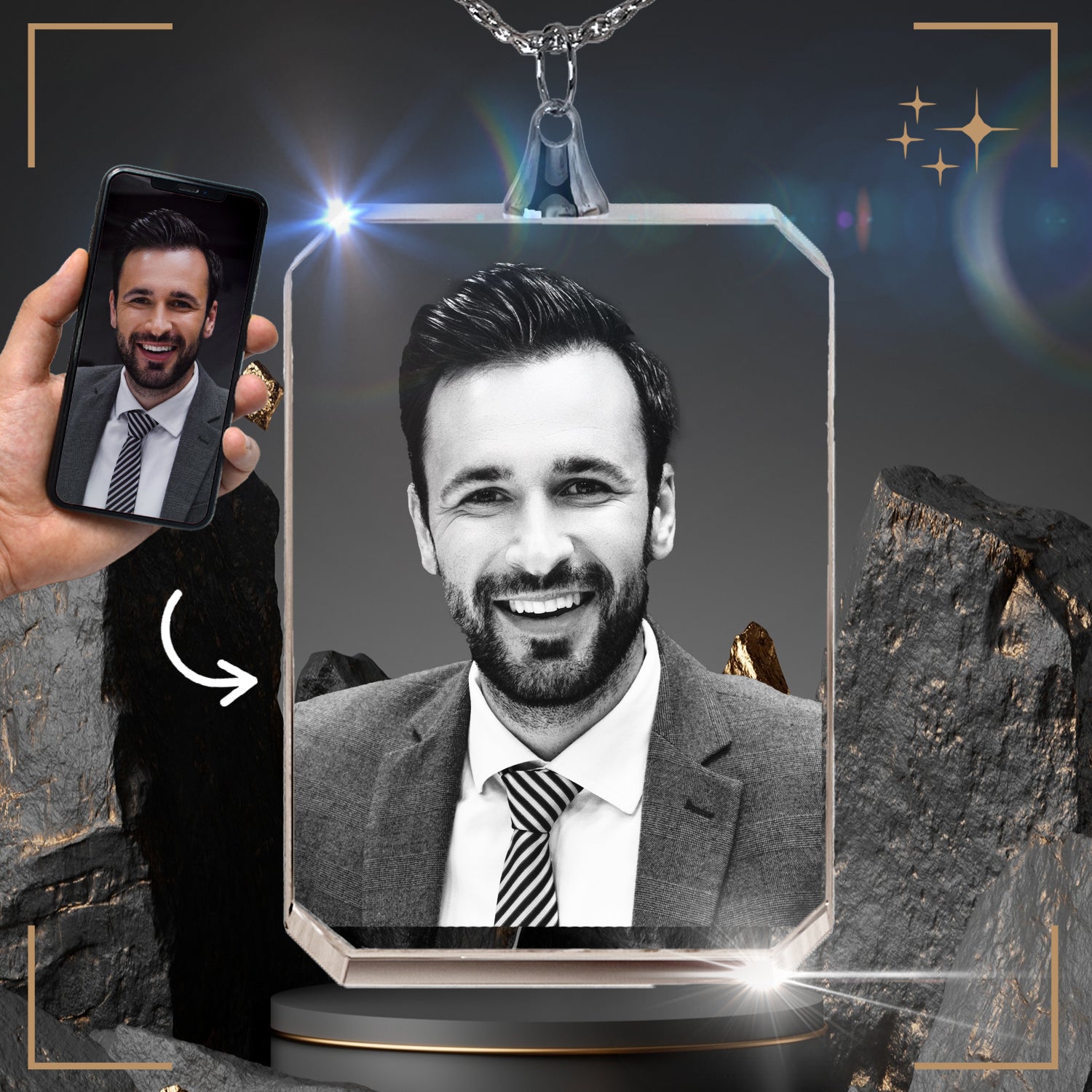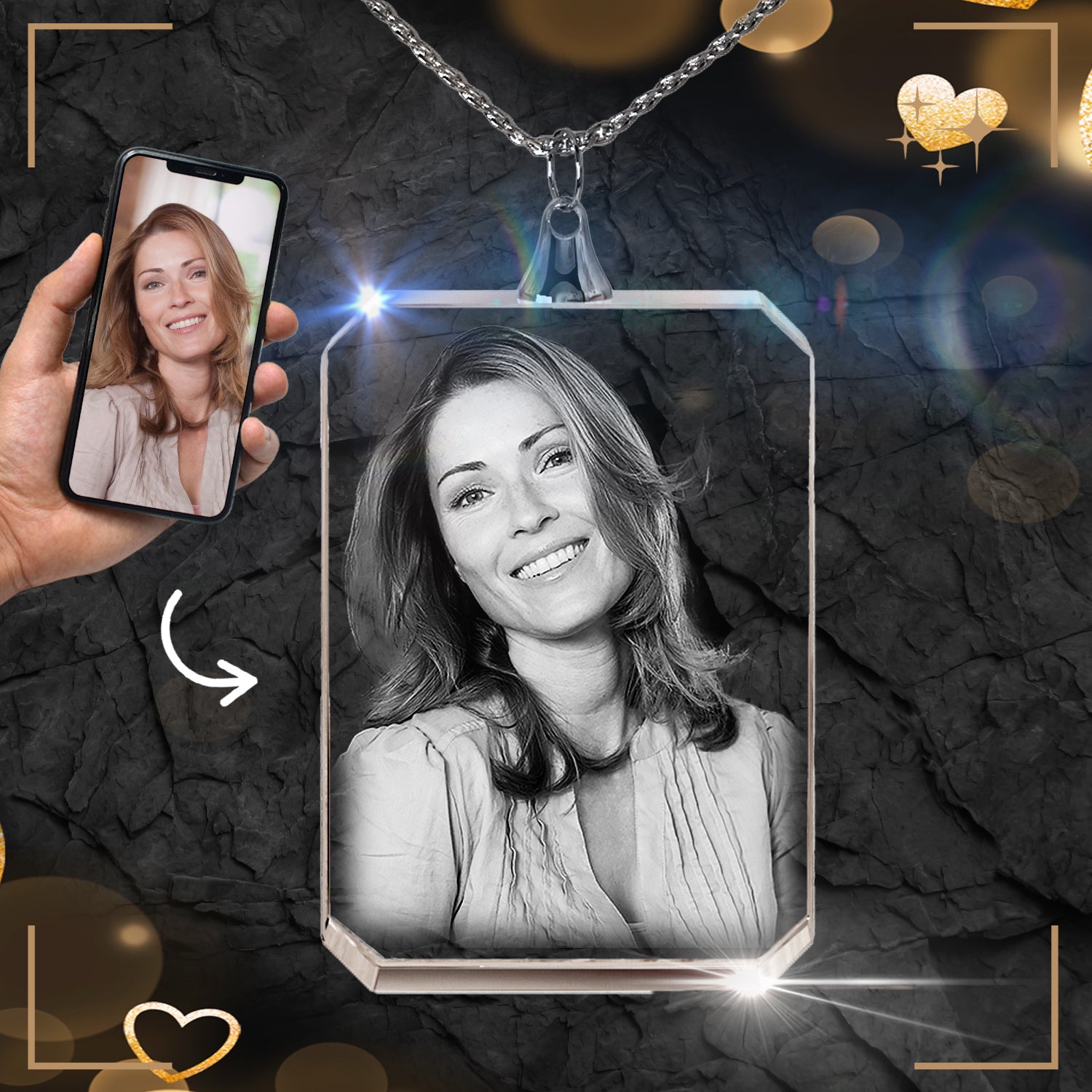 This Rectangle Necklace 2D is the perfect accessory for anyone looking for a unique accessory. The crystal features an image that has been laser engraved directly onto the necklace, offering a detailed design that won't wear away. Enjoy a unique look that will last for years.