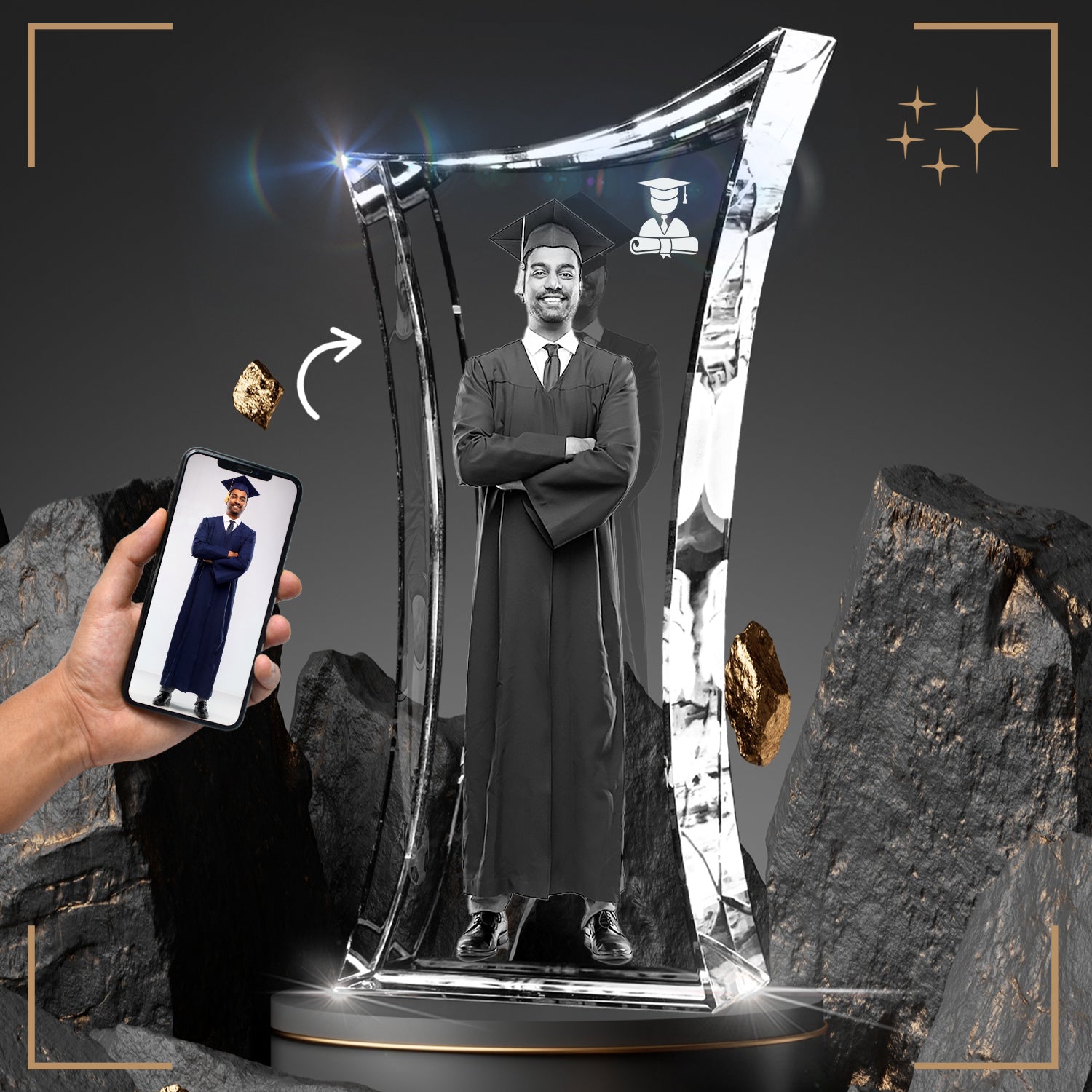 A: CAPTUR3D has an easy 3-step ordering process. First, choose the size of the crystal that suits your needs. Next, upload the high-resolution, clear, and well-lit photo that you want to be engraved. Ensure that the number of people in the photo corresponds with the size of the crystal you have selected. Lastly, submit your order. We'll take care of the rest!